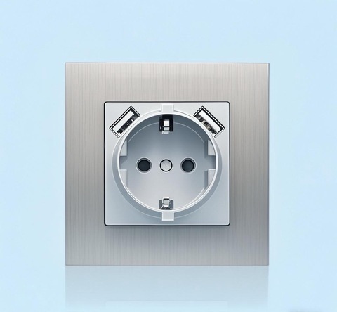 Prise murale électrique standard de haute qualité avec double sortie de ports USB avec prise murale en aluminium brossé