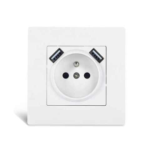 Prise électrique murale USB de norme européenne Prise électrique murale USB de type français avec 2 ports de type a